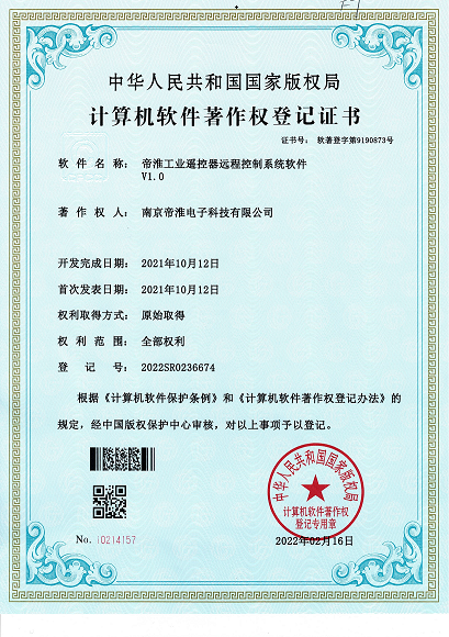 南京帝淮电子科技有限公司,国内工业??仄餍幸盗炀笠?,自主研发、定制、非标设计各类工业级无线??仄?、工业级有线控制器、智能化自主算法逻辑的本地控制器等系列产品。已经申请及正在申请的技术专利、外观专利有近三十项左右,并通过了CE欧盟认证、国家级试验检验报告、EMC电磁兼容认证等。