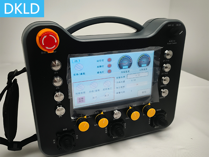 • 3个双轴摇杆+8个按键+1个两档旋转开关+1个5档旋转开关7寸触摸屏平板型工业无线遥控器